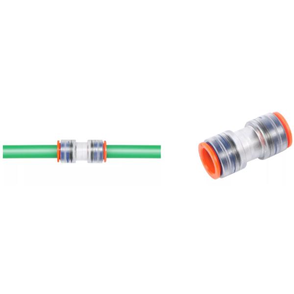 These connectors were developed to connect microconduits to each other. Our system allows easy and fast connection and disconnection of microcatheters. The connector has a robust construction against high pressure and can be used in direct burial (DB) applications. The transparent body makes the cable in the connector easy to inspect visually.